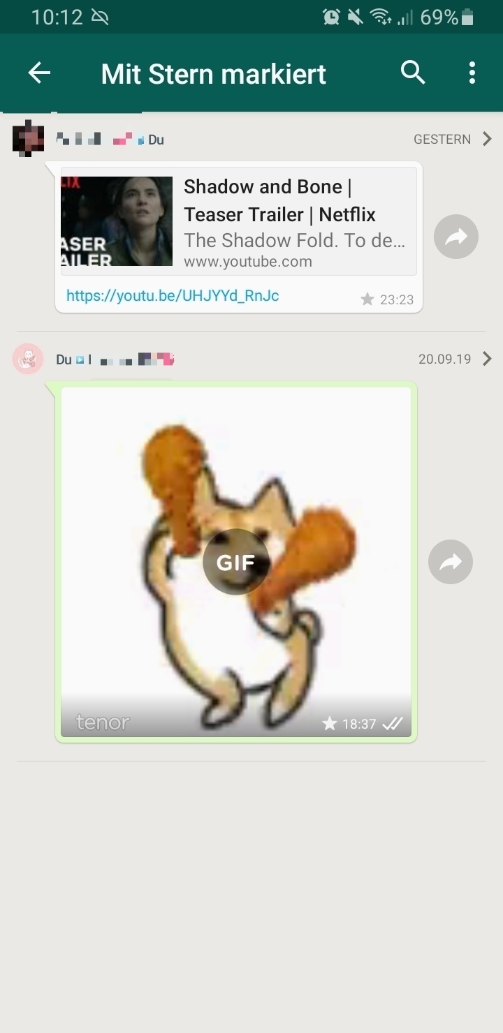 Manche Nachrichten sind wichtiger als andere. Sei es ein Termin, an den Sie sich erinnern müssen, oder ein gutes Restaurant, das Ihnen empfohlen wurde. Es ist möglich, diese Nachrichten mit einem Lesezeichen zu versehen und im Bereich "Mit Stern markiert" zu sammeln. Dieses Menü rufen Sie unter Android einfach über das Drei-Punkt-Menü oben rechts auf. Auf dem iPhone finden Sie es bei den Kontakt- oder Gruppeninformationen, die Sie öffnen, indem Sie in einem Chat oben auf den Namen tippen.