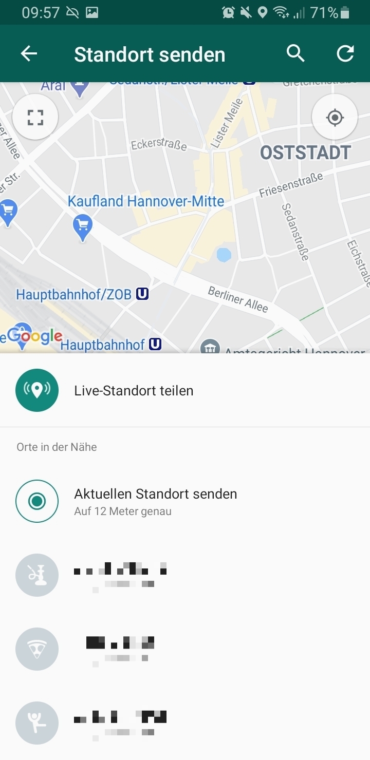 Einen Standort-Pin zu senden, ist in WhatsApp recht einfach: Sie tippen auf das Büroklammer-Symbol unter Android oder das Plus unten links auf dem iPhone im Nachrichtenfeld und wählen "Standort". Das war aber noch nicht alles: In WhatsApp könne Sie sogar Ihren Live-Standort teilen. So könne Ihre Chat-Partner in Echtzeit sehen, wo Sie sich befinden.