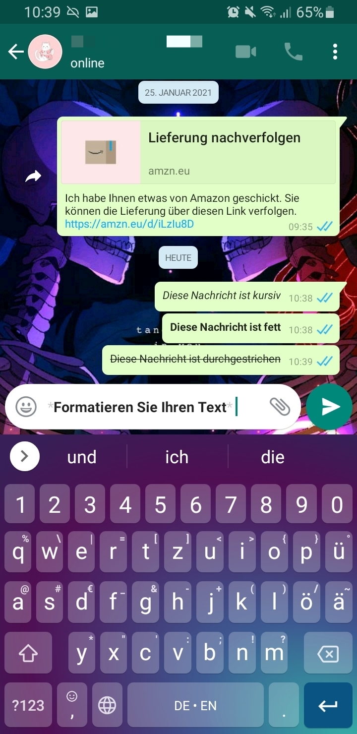 Wussten Sie, dass Sie in WhatsApp Ihren Text formatieren können? Fett, kursiv oder ganz durchgestrichen zu schreiben, ist gar kein Problem. Wie Sie Text in WhatsApp fett, kursiv und durchgestrichen schreiben, können Sie in einem weiteren Tipp nachlesen.