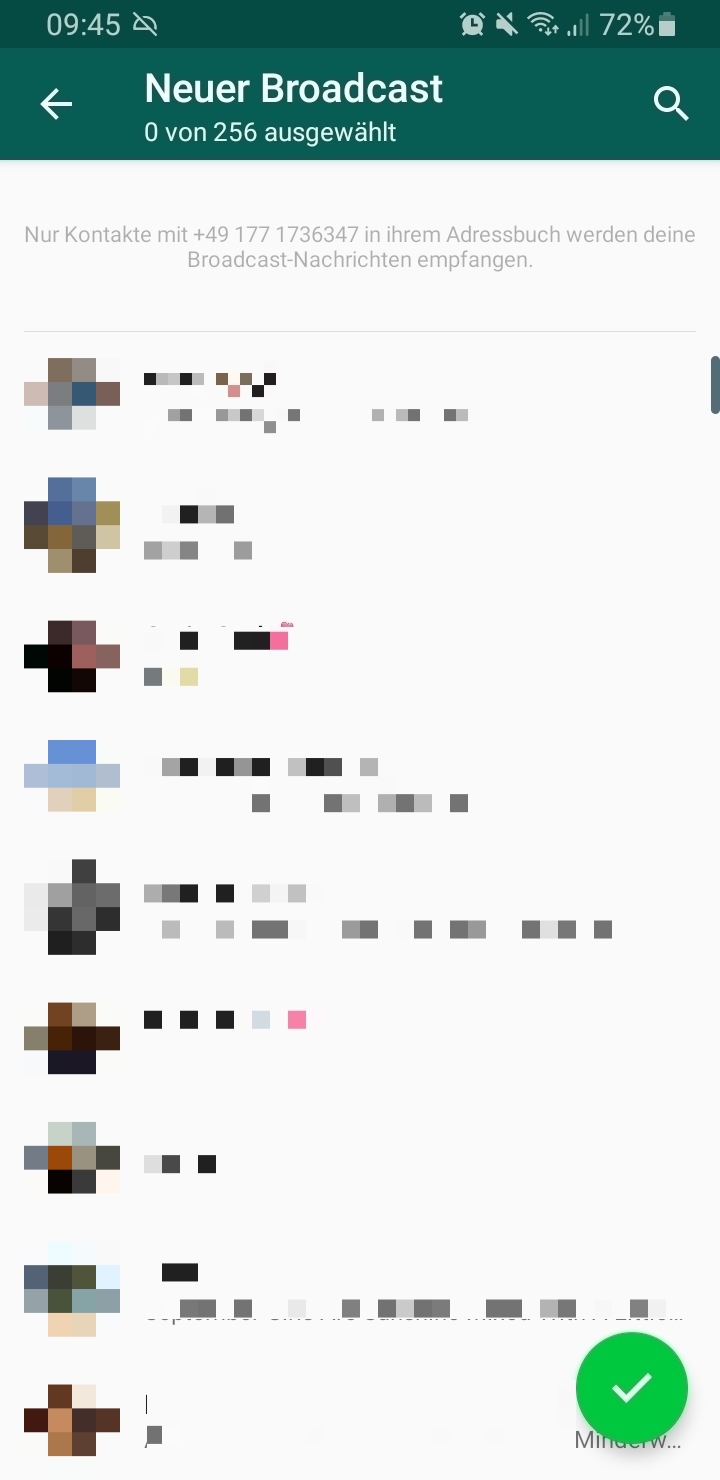 Diese Funktion ist wirklich praktisch für große Ankündigungen oder Einladungen. In WhatsApp ist es möglich, dieselbe Nachricht an mehrere Kontakte zu senden, ohne dass diese sich in einem Gruppenchat befinden oder sehen, wer die Nachricht sonst noch erhalten hat. Nützlich, wenn Sie wichtige Neuigkeiten mit einer Ankündigung teilen oder allen einen Weihnachtsgruß schicken möchten. Alles über die sogenannten Broadcast-Listen in WhatsApp können Sie in einem weiteren Beitrag nachlesen.