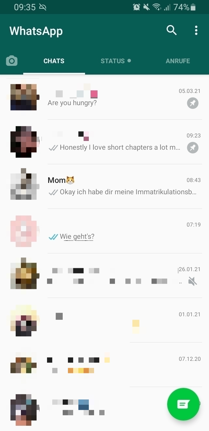 Wenn Sie mit einem Kontakt besonders häufig schreiben und dieser wichtig für Sie ist, können Sie den entsprechenden Chat ganz oben anheften. So steht der Chat immer ganz oben, auch wenn Nachrichten von anderen Kontakten ankommen. Markieren Sie dafür unter Android einfach den Chat und tippen Sie auf die Reißzwecke, die erscheint. Auf dem iPhone wischen Sie auf dem gewünschten Chat von links nach rechts und wählen dann die Option "Fixieren".