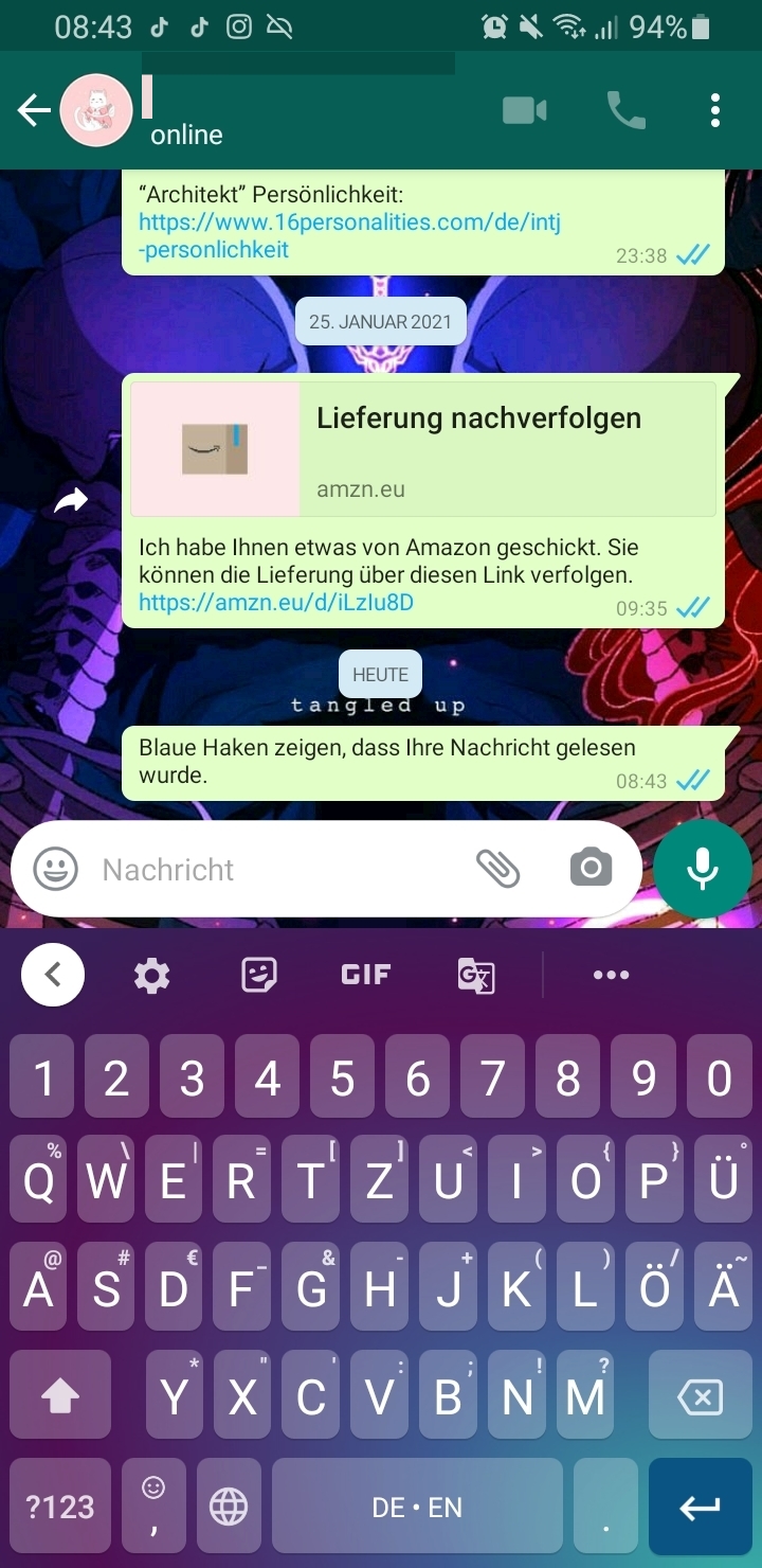 Das berüchtigte blaue Häkchen zeigt an, dass eine Nachricht vom Chat-Partner gesehen wurde. Wenn Sie lieber nicht möchten, dass Ihre Kontakte sehen, wann Sie eine Nachricht gelesen haben, können Sie die Lesebestätigungen deaktivieren. Wie Sie die blauen Haken deaktivieren, können Sie hier nachlesen.